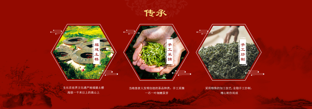 簡小葉土楼茶,生长在世界文化遗产地福建土楼,海拔1000米以上的高山茶园,当地气候宜人,云雾缭绕,种茶条件得天独厚;茶树屹立山巅,孕育于大山深处,常年浸泡云雾,得云雾甘露滋润。品牌继承中国传统制茶工艺,融入客家古法制茶,凝聚家族数代人的制茶经验,特殊的加工技艺,高水平手工精制“土楼系列”、“云水系列”等土楼茶。同时致力于开发当地土特产、农副产品,采用客家人传统手工艺,用原生态的食材,制作土楼客家姜糖、土楼麻竹笋干、土楼稻谷、客家牛轧糖、客家米酒等高山特产。